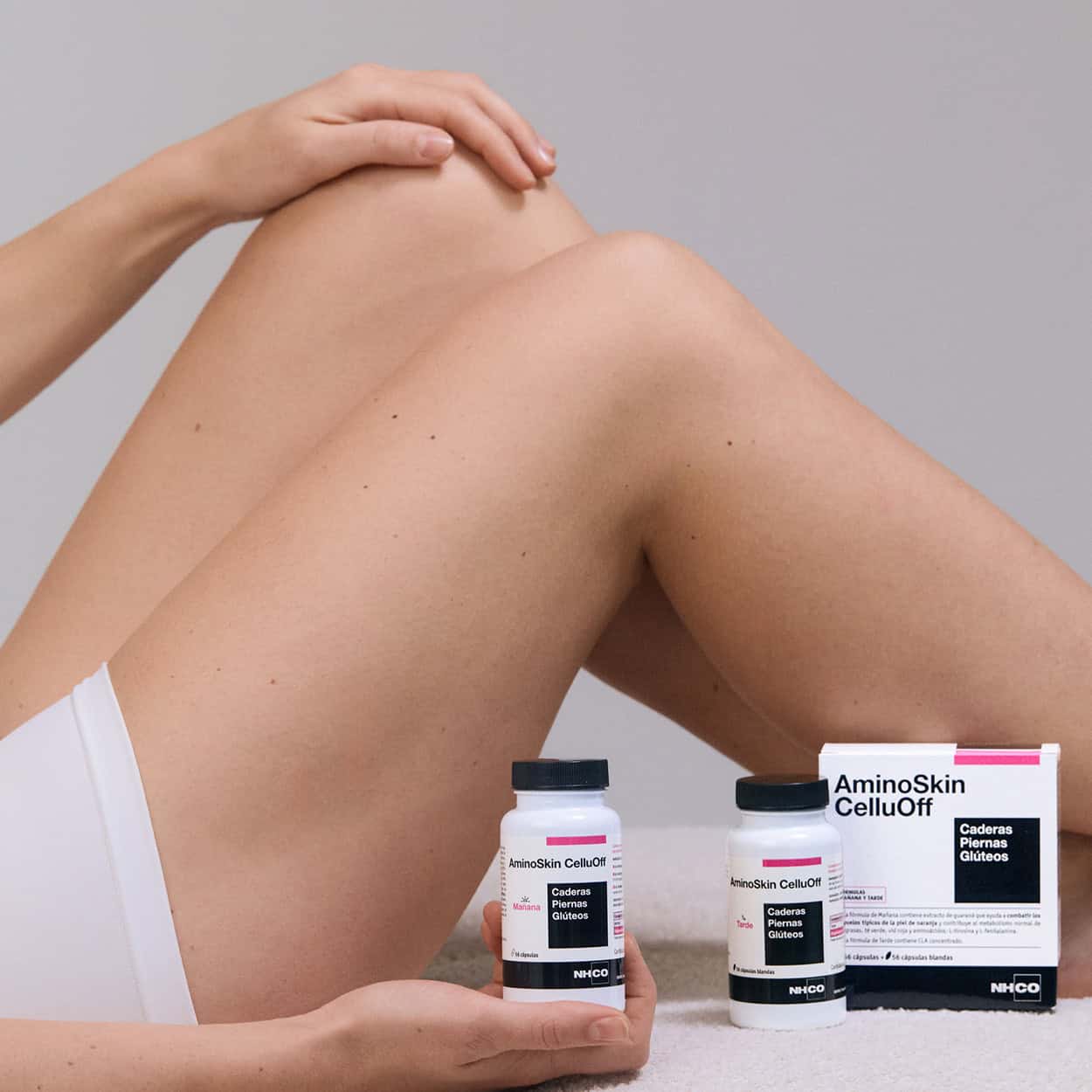 NHCO Nutrition® ha desarrollado AminoSkin CelluOff mañana y tarde para ayudar a estilizar la figura, especialmente en las caderas, los muslos o piernas y los glúteos.
